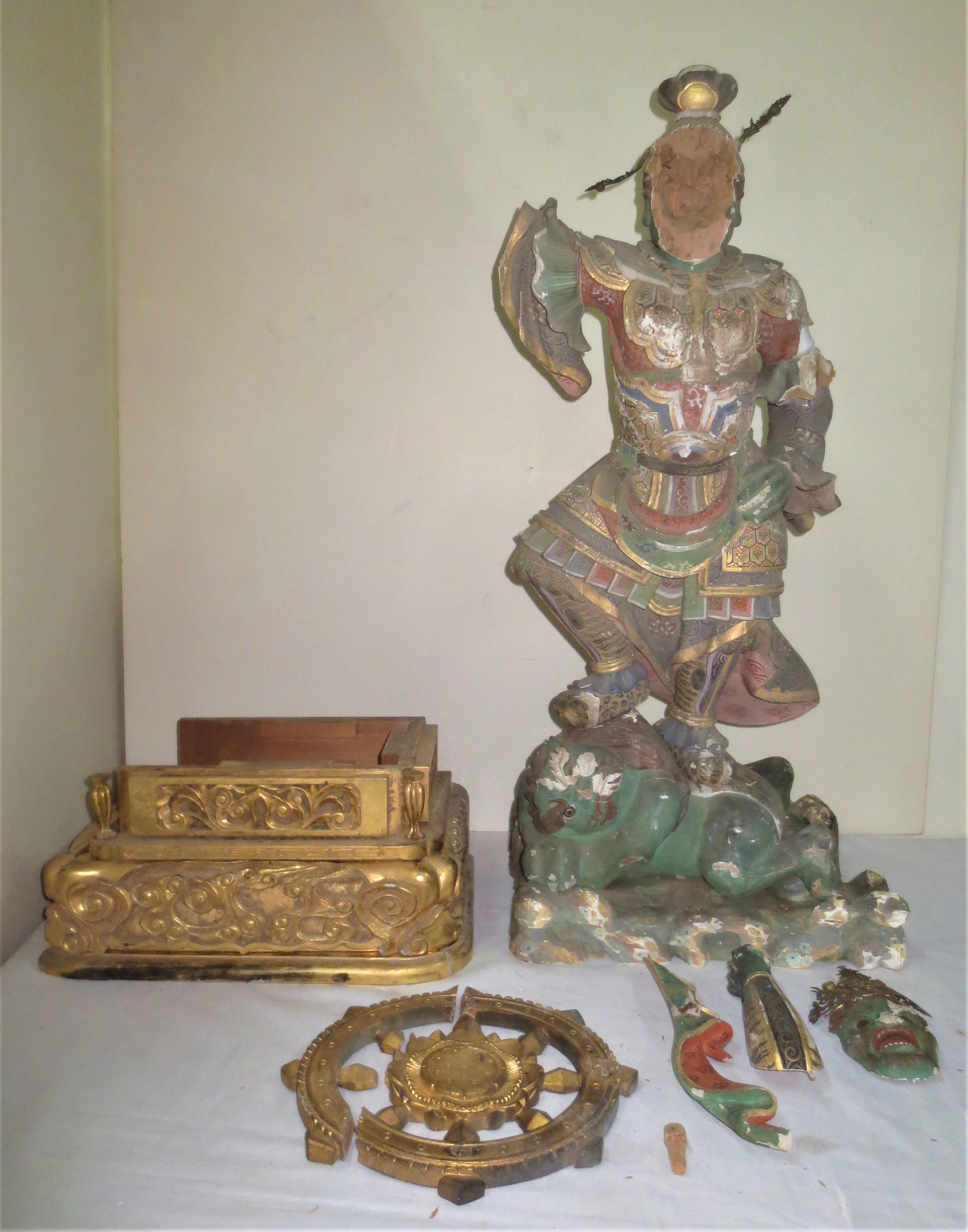 [四天王]持国天〈じこくてん〉像の修復 2021年6月1日 持国天〈じこくてん〉像を修復致しました 修復のご協力誠に有り難うございました。山主合掌 施主:江田島市 Oご夫妻様 修復内容:造形完全修復。極彩色仕上げ 安置場所:本堂正面向かって西序(左側)室中の雛壇上 ※以下、修復前の様子 持国天〈じこくてん〉について 須弥山〈しゅみせん〉の東部を守り、仏法を守護する武神です。 名前の通り、「国を支える者」として国家に平和と安泰をもたらす力があります。 主なご利益として、善を助け悪をくじき、国を守護します。